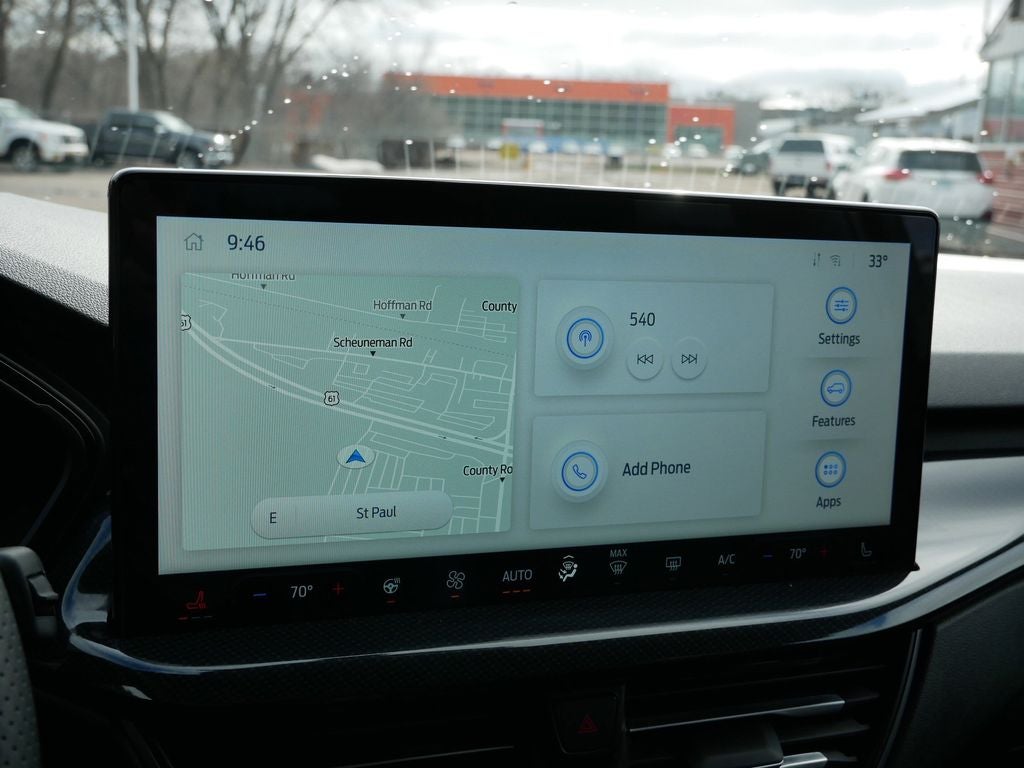 The Escape ST-Line's comprehensive suite of advanced technologies, including the SYNC 4 infotainment system with a 13.2-inch touch screen, wireless Apple CarPlay and Android Auto, and a suite of Ford Co-Pilot360 driver-assist features, ensures you stay connected, informed, and safe on the road. The Cold Weather Package adds even more convenience with features like a heated steering wheel and heated front seats.
